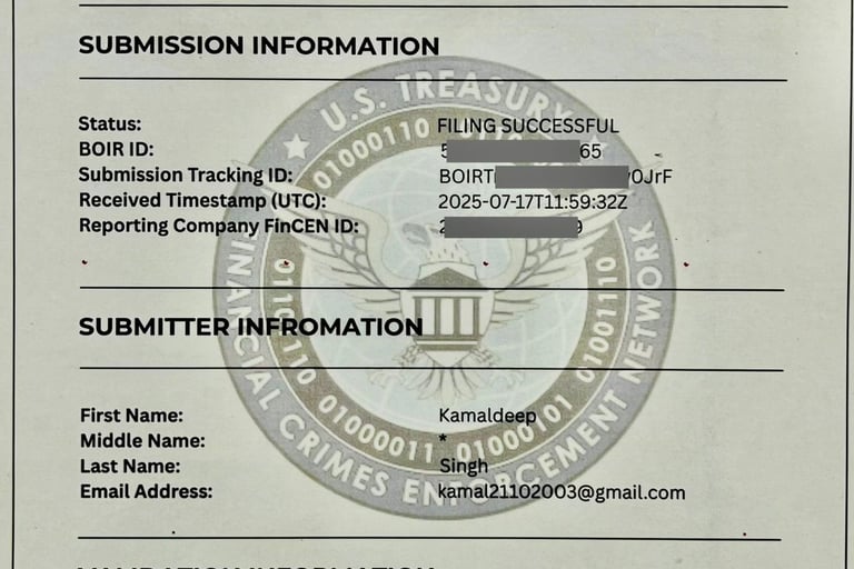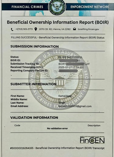 FinCEN BOIR Filing Confirmation (Financial Crime Enforcement Network)