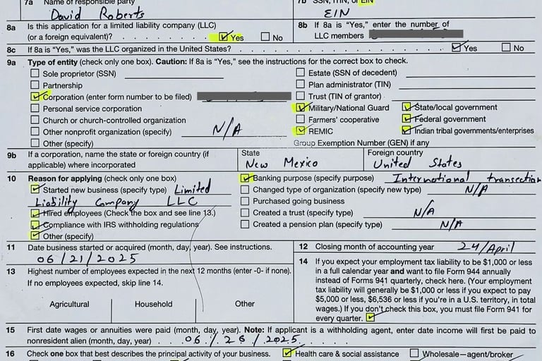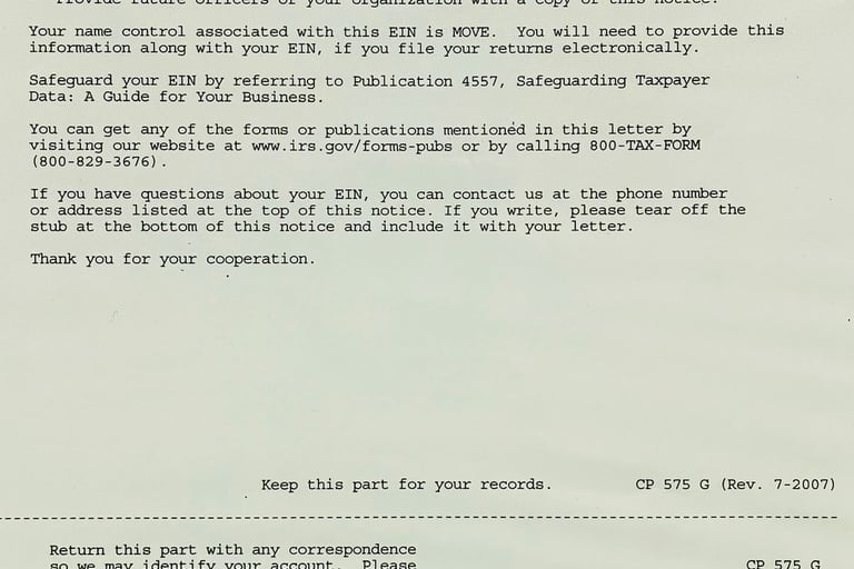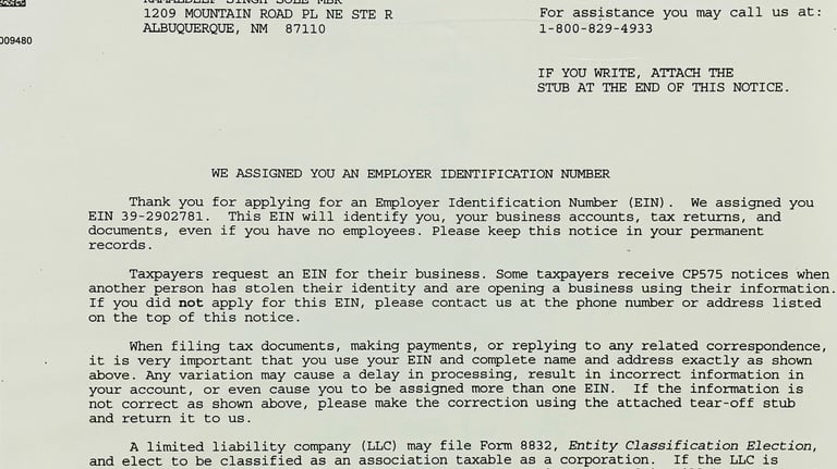 Employer Identification Number issued by the U.S. Internal Revenue Service for tax and federal compliance.